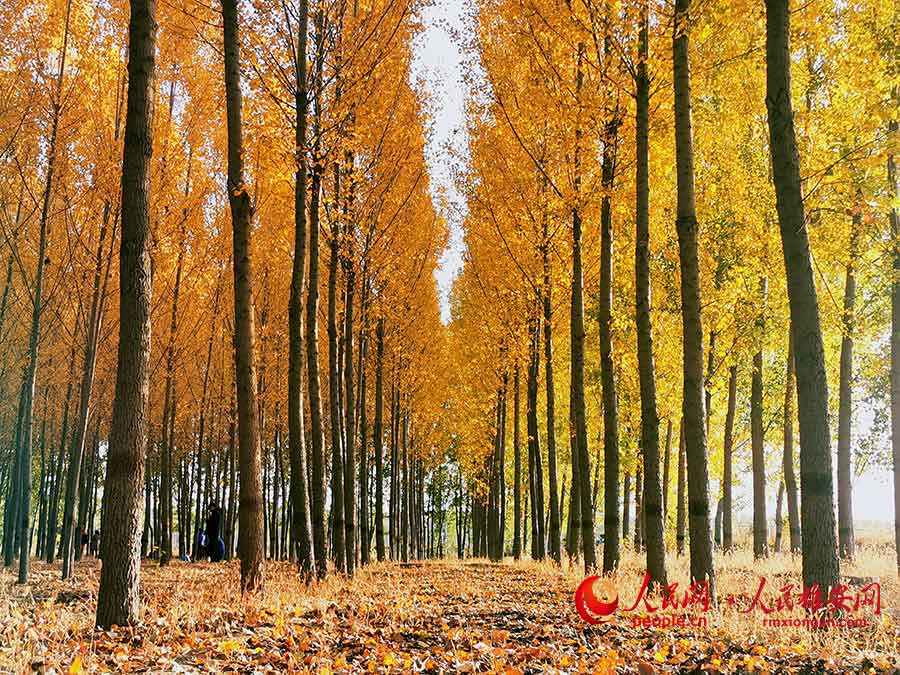 Hermoso bosque de álamos en la Nueva área de Xiongan. (Foto / Li Zhaomin)