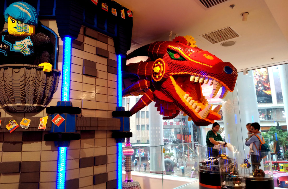 Los visitantes miran los productos dentro de la tienda insignia de Lego en Shanghai. Yan Daming / China Daily
