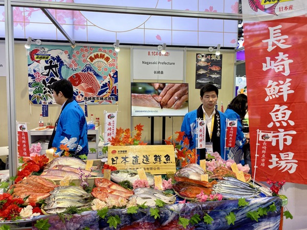 Imagen de los mariscos frescos exhibidos por el puesto nacional de Japón en el pabellón de productos agrícolas y alimenticios de la segunda Exposición Internacional de Importaciones de China. Foto por Wang Xiaobo, Diario del Pueblo