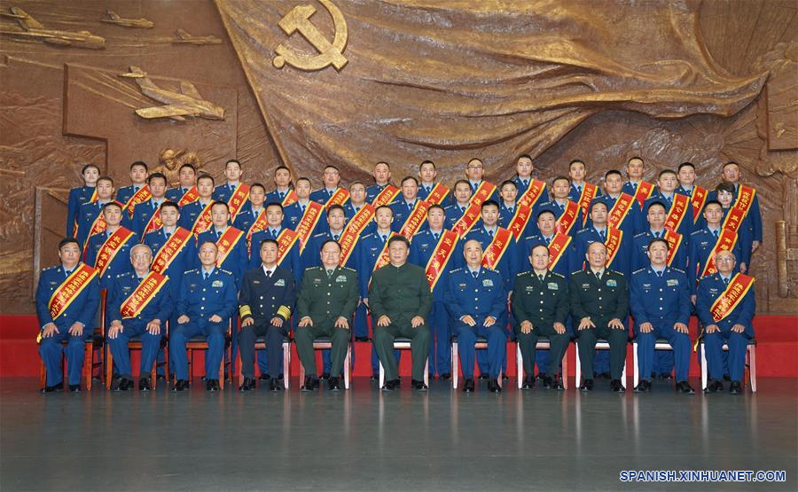 El presidente chino, Xi Jinping, también secretario general del Comité Central del Partido Comunista de China (PCCh) y presidente de la Comisión Militar Central (CMC), se reúne con representantes de unidades e individuos modelo de la Fuerza Aérea del Ejército Popular de Liberación (EPL) en el Museo de Aviación de China en el distrito Changping, Beijing, capital de China, el 8 de noviembre de 2019. Xi asistió el viernes a un evento con motivo del 70o aniversario de la fundación de la Fuerza Aérea del EPL en las afueras del norte de Beijing. En nombre del Comité Central del PCCh y la CMC, Xi envió felicitaciones por el aniversario de la fundación de la fuerza aérea y saludos a todo su personal de servicio. (Xinhua/Li Gang)