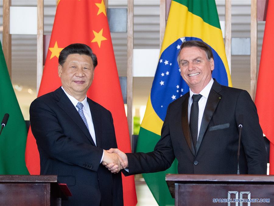 El presidente chino, Xi Jinping, sostiene conversaciones con el presidente brasile?o, Jair Bolsonaro, en Brasilia, Brasil, el 13 de noviembre de 2019. (Xinhua/Li Xueren)