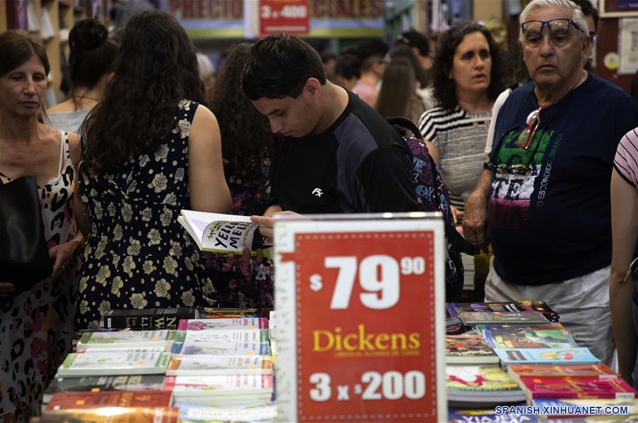 Residentes observan libros en una librería durante la "Noche de las Librerias", en la ciudad de Buenos Aires, capital de Argentina, el 17 de noviembre de 2019. La ciudad de Buenos Aires, capital de Argentina, celebró el domingo una nueva edición, la número 12, de "La noche de las librerías", actividad en la que los espacios de cultura y literatura abrieron hasta más allá de la medianoche. (Xinhua/Martín Zabala)