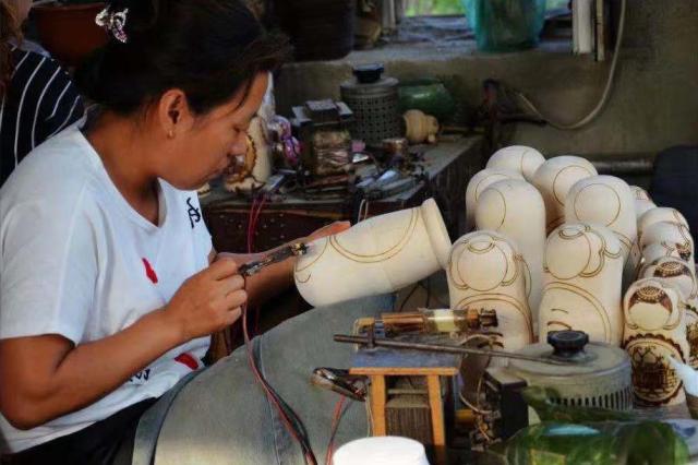 Una mujer que dibuja mu?ecas rusas podría ganar unos 3.000 yuanes por mes, mientras que un carpintero podría ganar hasta 10.000 yuanes. Con la artesanía, los aldeanos pueden ganarse la vida trabajando en casa.
