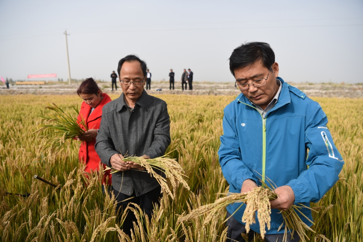 El arroz de mar desarrollado por un equipo liderado por Yuan Longping, destacado experto chino en arroz híbrido, logró un rendimiento de 546,74 kilogramos por mu (0,07 hectáreas) en Yopurga, Región Autónoma de Xinjiang Uygur. [Foto: proporcionada a chinadaily.com.cn]