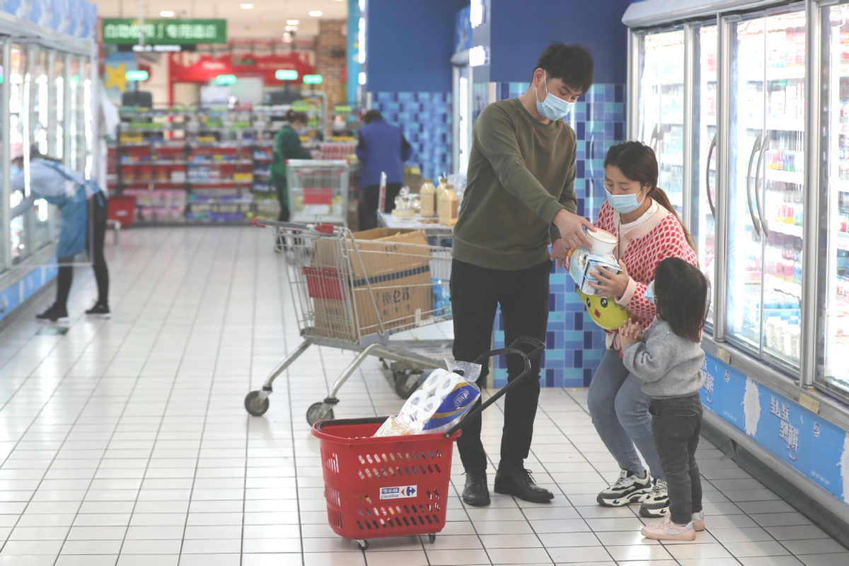 Residentes compran alimentos y suministros en un supermercado de Wuhan, provincia de Hubei, 20 de abril del 2020. [Foto: Wang Jing/ China Daily]