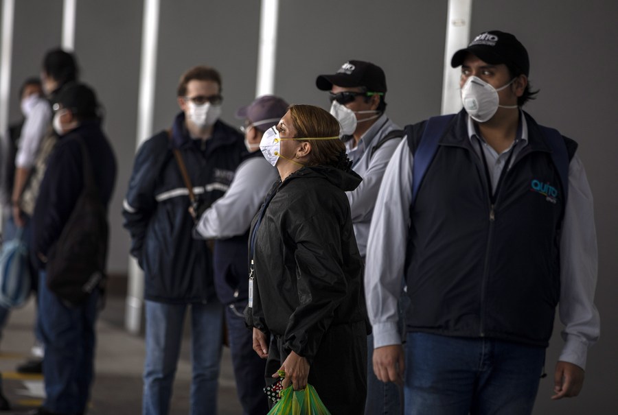 Personas portan mascarillas en una estación de autobús, en Quito, capital de Ecuador, el 3 de junio de 2020. (Xinhua/Santiago Armas)