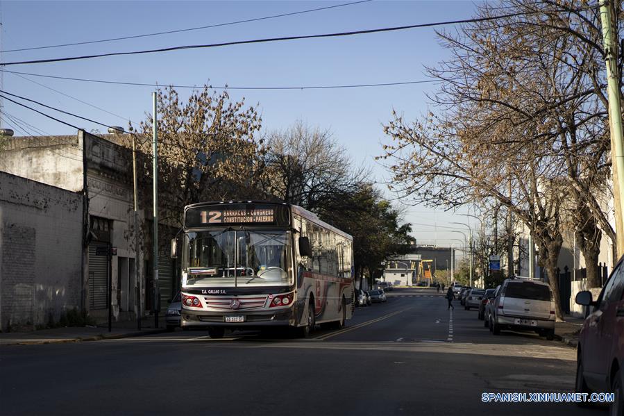 Un autobús de la línea 12 de la empresa de autobuses Transportes Automotores Callao S.A. que cuenta con una cámara termográfica instalada para medir la temperatura corporal de los pasajeros realiza un recorrido de prueba en la ciudad de Buenos Aires, capital de Argentina, el 11 de junio de 2020. Los autobuses de Buenos Aires instalaron cámaras termográficas chinas para prevenir contagios de la enfermedad causada por el nuevo coronavirus (COVID-19) en la capital argentina, principal foco de casos en el país. (Xinhua/Martín Zabala)