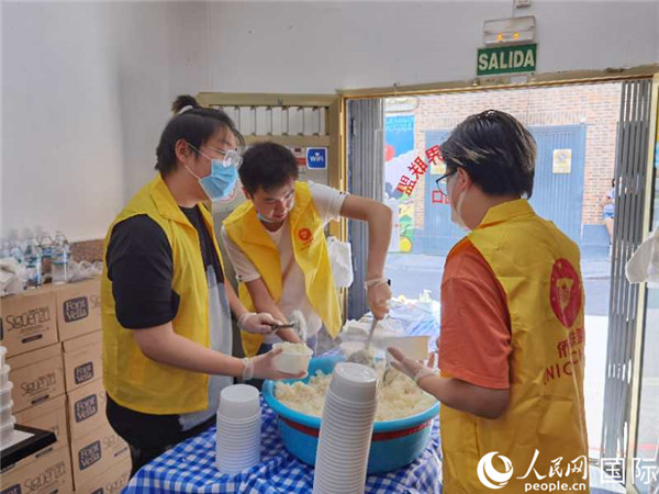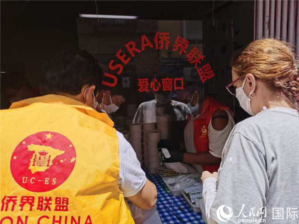 "Después del estallido de la epidemia en Espa?a a mediados de marzo, a finales de ese mismo mes, los chinos del barrio chino de Madrid pidieron ayuda a nuestra alianza y dijeron: ′la gente tiene problemas para conseguir comida′," dijo Chen, a?adiendo: “a finales de abril, varios grupos chinos de ultramar distribuyeron 400 cajas gratuitas de comida a los compatriotas chinos. Más tarde se descubrió que, además de los chinos, había muchos residentes de otras nacionalidades con problemas para conseguir comida. Así que decidimos ayudarlos con un almuerzo gratuito del 22 de mayo al 20 de junio (30 días en total)".