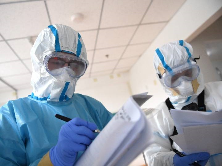 Li Ruoxi (izquierda) y su compa?ero realizan una investigación epidemiológica en una sala de aislamiento en un hospital en Beijing, el 25 de junio de 2020. [Foto / Xinhua]
