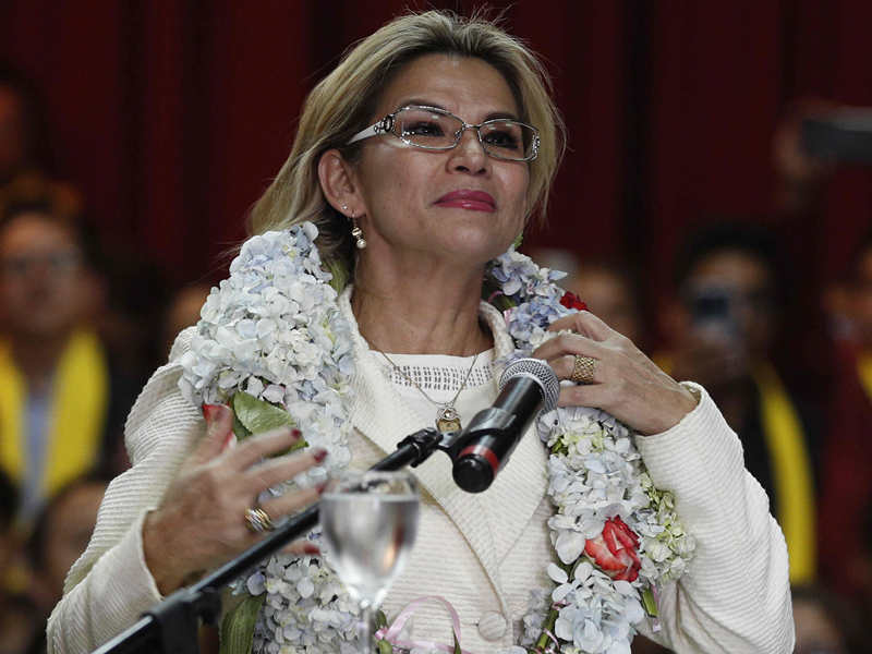 La presidenta interina de Bolivia, Jeanine Anez, habla durante una ceremonia para anunciar su nominación como presidenta