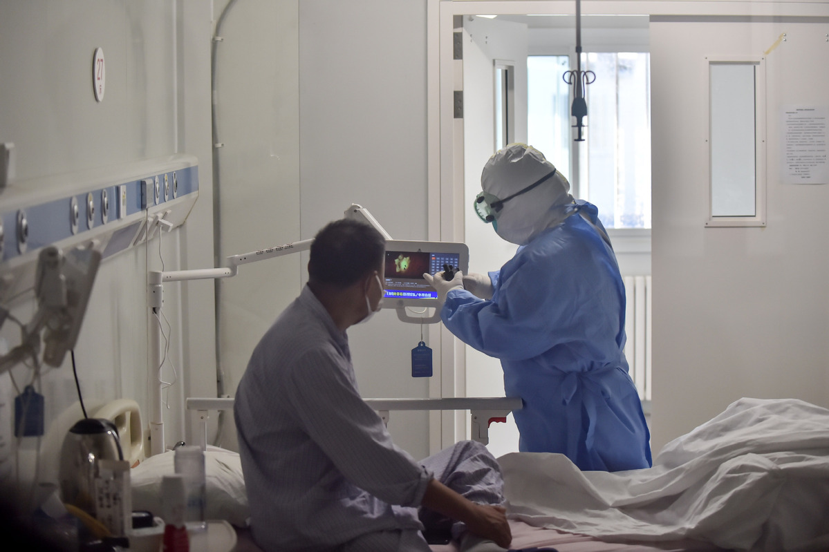 Una enfermera ayuda a un paciente COVID-19 en el Hospital Beijing Ditan en Beijing, el 16 de junio de 2020. [Foto: Xinhua]
