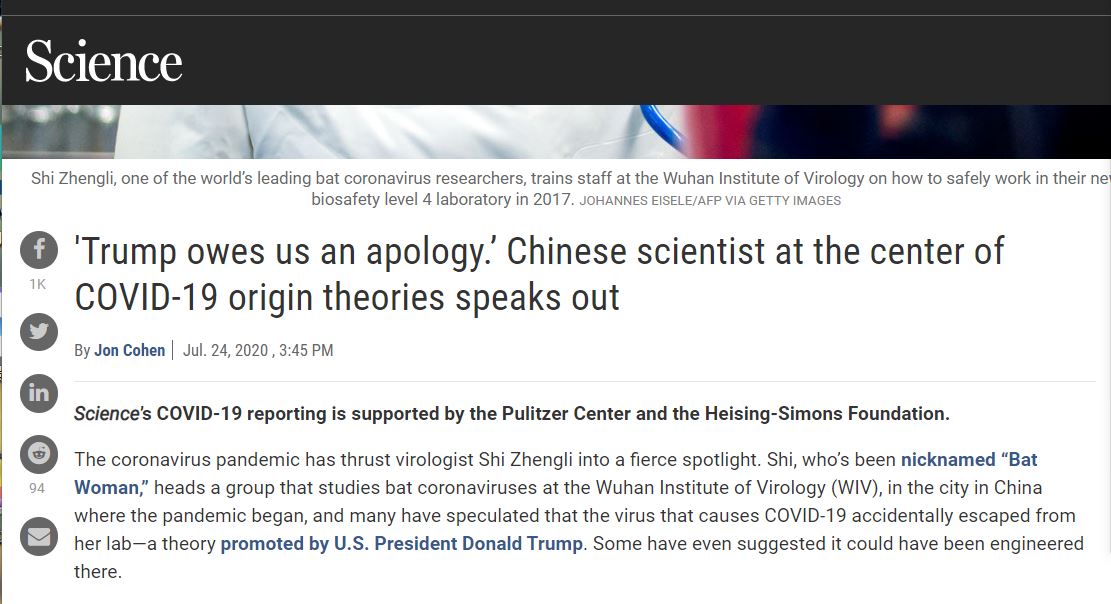 Por primera vez, la revista Science ha dialogado con Shi y le ha preguntado sobre el origen del nuevo virus y la investigación. El 15 de julio, Shi entregó sus respuestas por escrito a la revista Science.