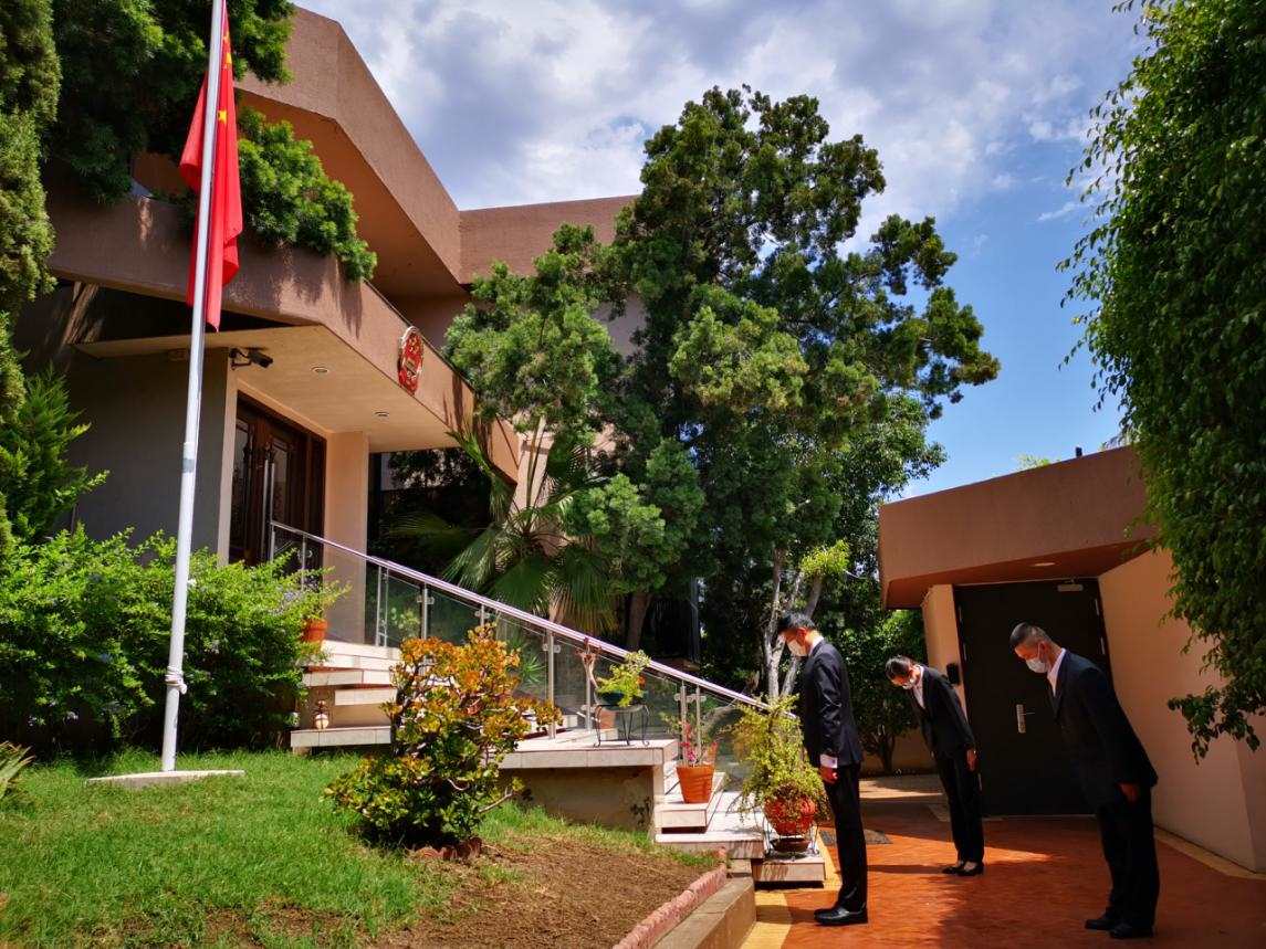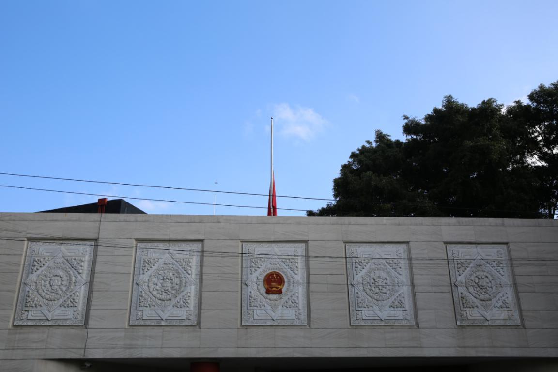 Ciudad de México, 19/08/2020 (El Pueblo en Línea) -El 17 de agosto, la Embajada de China en México y el Consulado General de China en Tijuana izaron a media asta la bandera nacional y a las 12:00 su personal diplomático guardaron un minuto de silencio en homenaje a los mexicanos fallecidos por el Covid-19, después de que México declarara la semana pasada un duelo nacional de 30 días por todas las víctimas que se contagiaron y fallecieron por la enfermedad.
