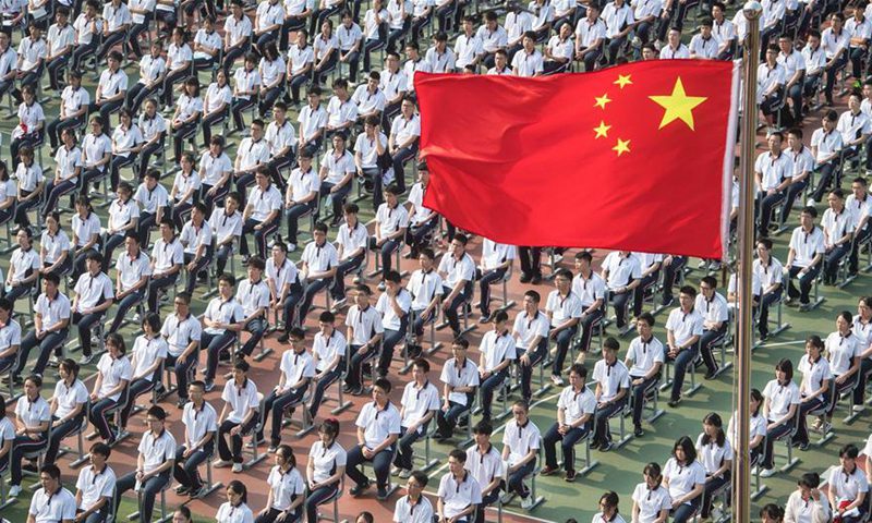 Estudiantes participan en la ceremonia de apertura de un nuevo semestre en Wuhan High School, provincia central china de Hubei, 1o de septiembre del 2020. (Foto: Xinhua/ Xiao Yijiu)