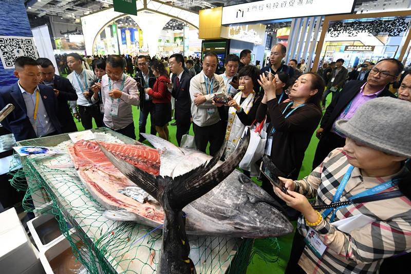 El 7 de noviembre de 2019, en el área de exhibición de alimentos y productos agrícolas de la segunda Exposición Internacional de Importaciones de China, se partió y sirvió en el lugar un atún rojo con un peso neto de 255 kg, lo que atrajo a muchos espectadores, que hicieron fotografías del producto. Por Weng Qiyu / vip.people.com.cn