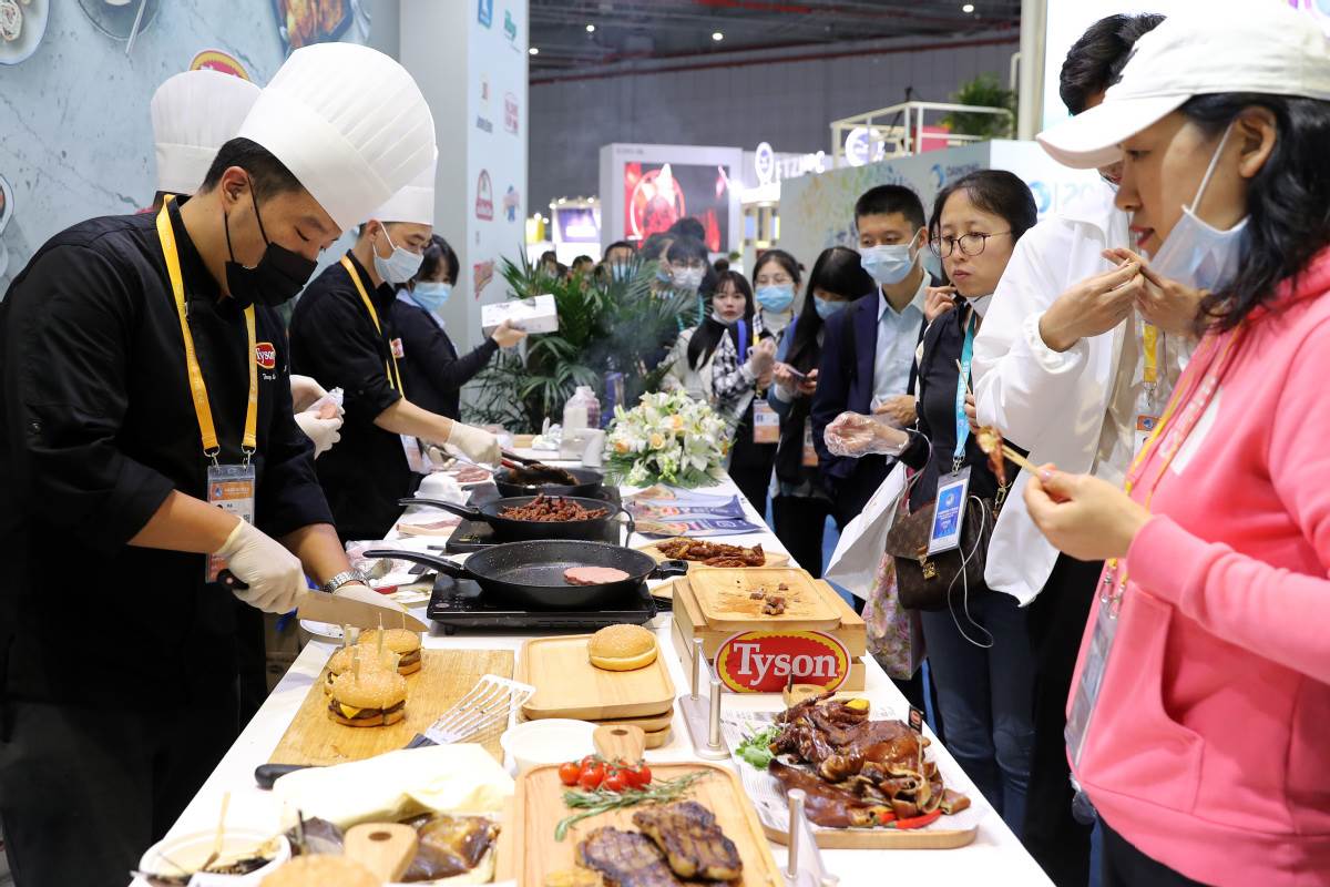Hamburguesas hechas de carne vegetal en la tercera Exposición Internacional de Importaciones de China, Shanghai, 5 de noviembre del 2020. [Foto: Wang Zhuangfei/ China Daily]