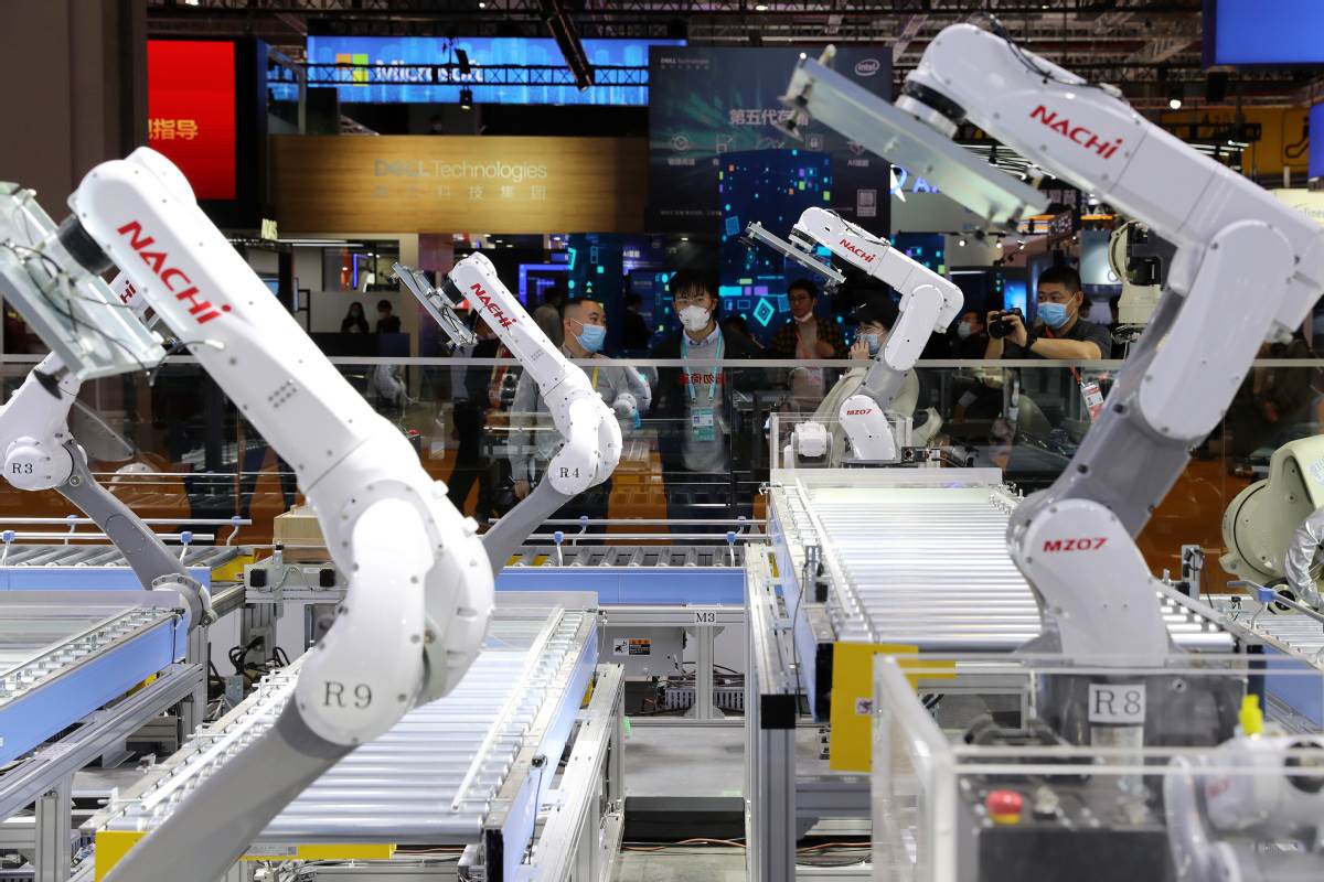 Robots industriales atraen la atención en la tercera Exposición Internacional de Importaciones de China, Shanghai, 5 de noviembre del 2020. [Foto: Wang Zhuangfei/ China Daily]