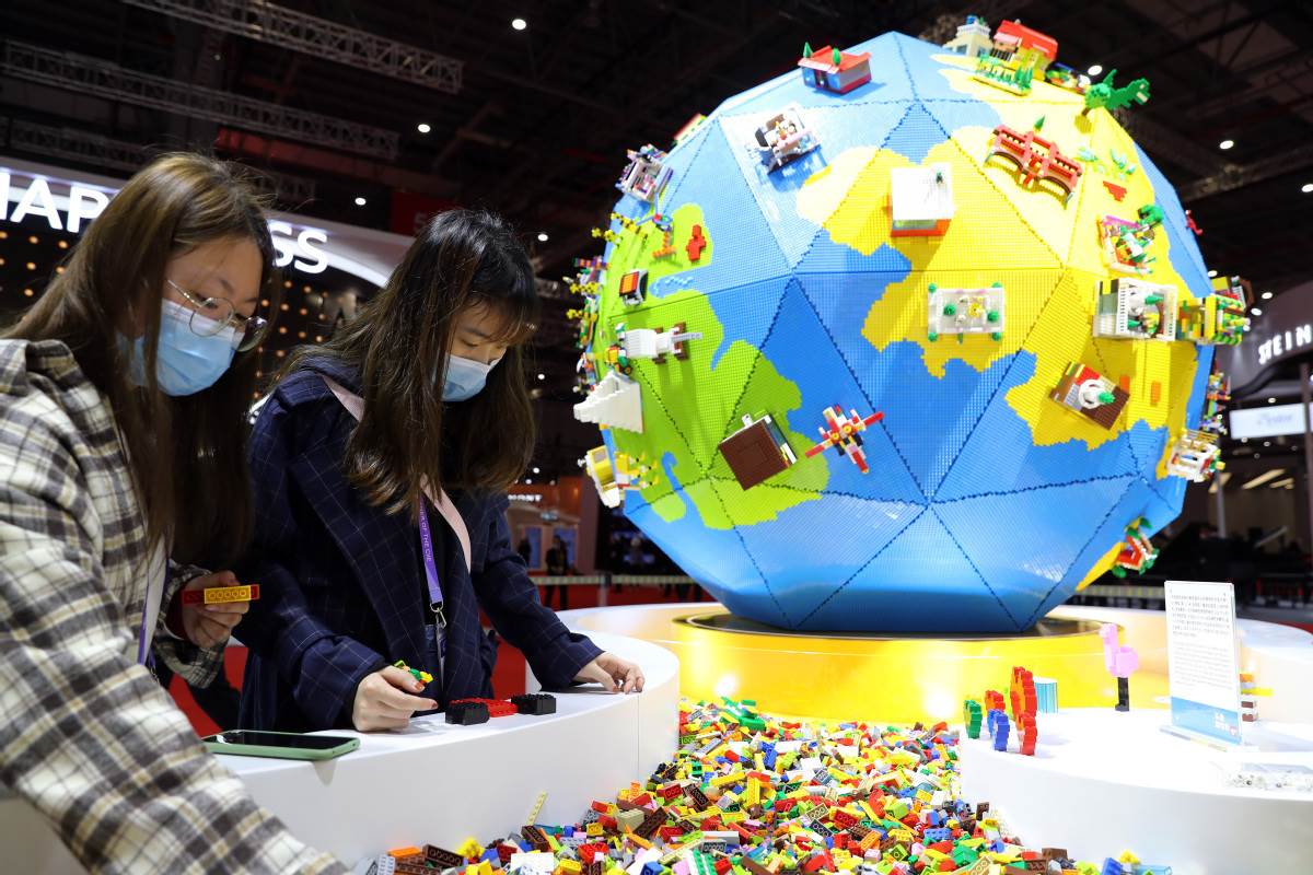 Juegos de lego en la tercera Exposición Internacional de Importaciones de China, Shanghai, 5 de noviembre del 2020. [Foto: Wang Zhuangfei/ China Daily]