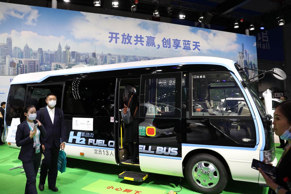Autobús impulsado en la tercera Exposición Internacional de Importaciones de China, Shanghai, 5 de noviembre del 2020. [Foto: Wang Zhuangfei/ China Daily]