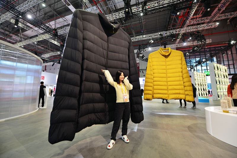 El 5 de noviembre, se exhibieron tres chaquetas de plumón gigantes en la tercera Exposición Internacional de Importaciones de China en Shanghai. Por Shen Chunchen, Pueblo en Línea.