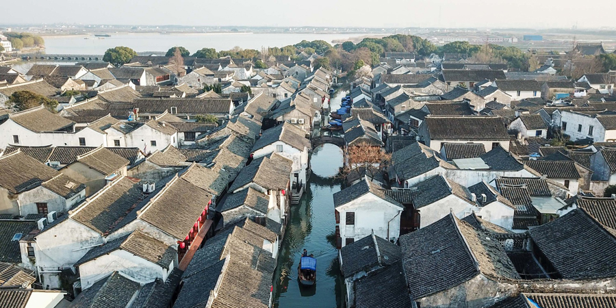 Turistas pasean en barcos turísticos por el río en la antigua ciudad de Zhouzhuang en Kunshan, ciudad de Suzhou, provincia de Jiangsu, el 9 de marzo de 2018. [Foto / Xinhua]