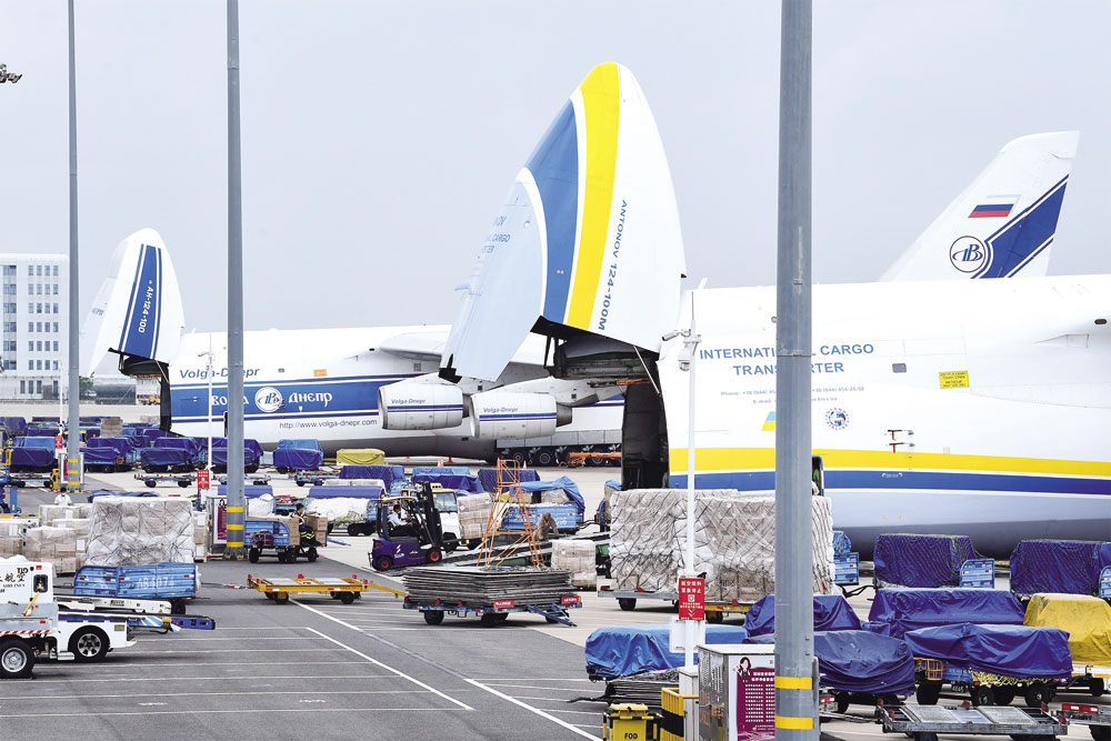Los suministros médicos se cargan en aviones de carga de diferentes países en el aeropuerto en abril. (Foto de China Daily)