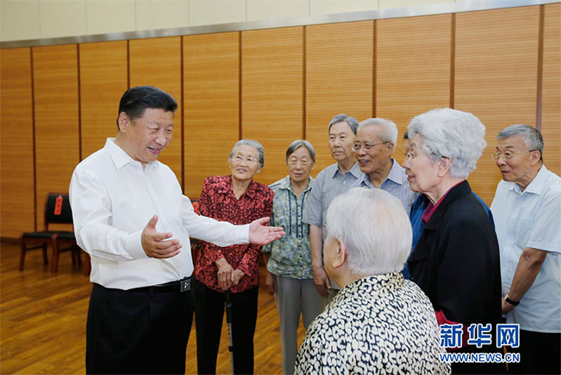 El presidente Xi Jinping conversa con maestros veteranos en la escuela Bayi de Beijing durante una visita el 9 de septiembre de 2016. [Foto / Xinhua]