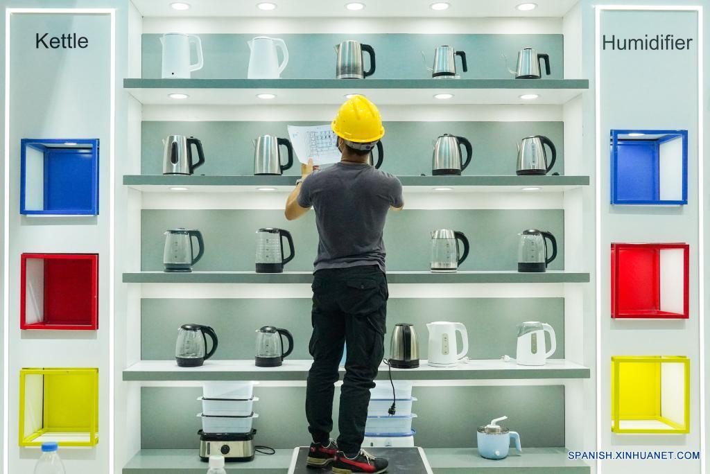 GUANGZHOU, 9 octubre, 2021 (Xinhua) -- Un trabajador prepara muestras en el centro de exhibiciones que hospedará la 130a sesión de la Feria de Importación y Exportación de China, en Guangzhou, en la provincia de Guangdong, en el sur de China, el 9 de octubre de 2021. La feria está programada para abrir el 15 de octubre. (Xinhua/Liu Dawei)