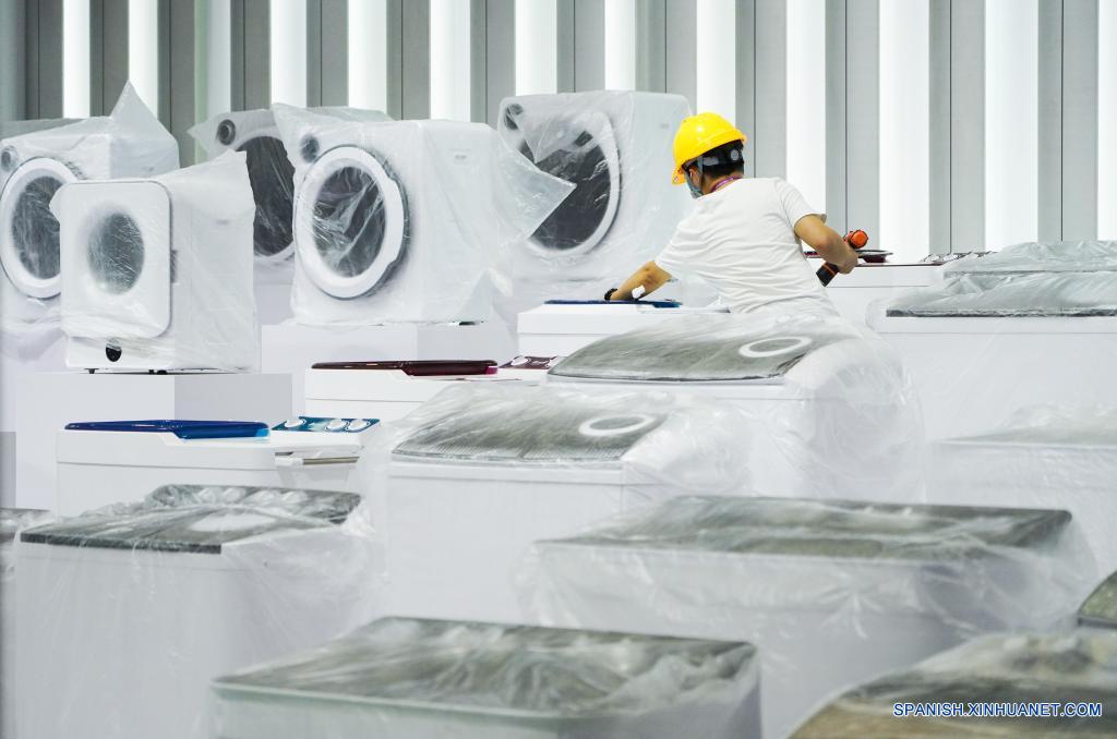 GUANGZHOU, 9 octubre, 2021 (Xinhua) -- Un trabajador prepara muestras en el centro de exhibiciones que hospedará la 130a sesión de la Feria de Importación y Exportación de China, en Guangzhou, en la provincia de Guangdong, en el sur de China, el 9 de octubre de 2021. La feria está programada para abrir el 15 de octubre. (Xinhua/Liu Dawei)