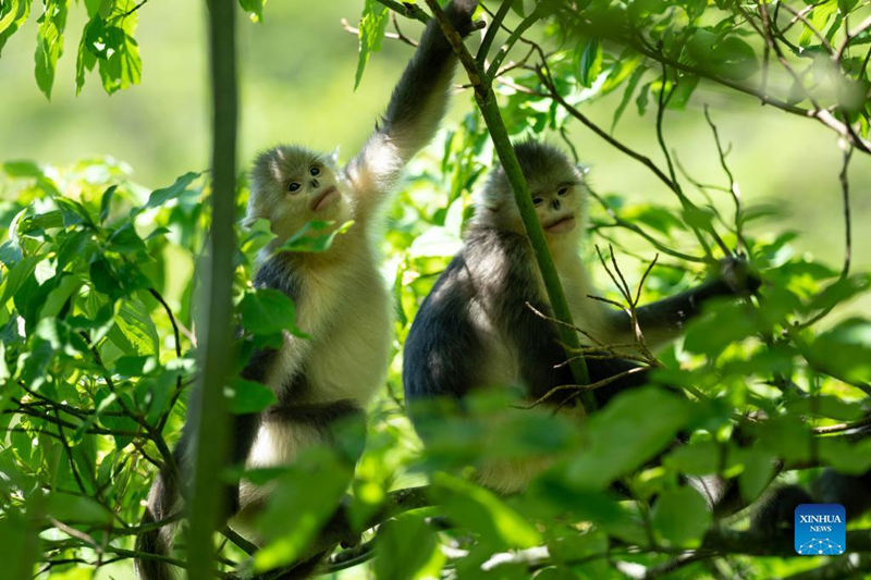 Un gibón hoolock Skywalker en un bosque en Yunnan. (Foto de archivo de Xinhua)