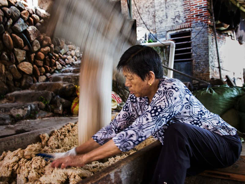 En la técnica del puente chino de madera en forma de arco solamente se utiliza mortaja y espigas, sin clavos ni pegamentos. Gracias a su singular construcción, este tipo de puente puede mantenerse en pie durante cientos de a?os. [Foto: Ye Yingyang/China Daily]