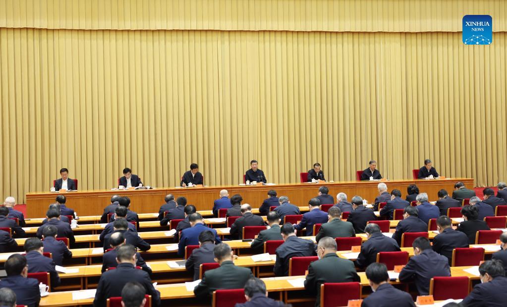 BEIJING, 4 diciembre, 2021 (Xinhua) -- El presidente chino, Xi Jinping, también secretario general del Comité Central del Partido Comunista de China y presidente de la Comisión Militar Central, habla en una conferencia nacional sobre el trabajo relacionado con los asuntos religiosos, en Beijing, capital de China. Li Keqiang, Li Zhanshu, Wang Yang, Wang Huning, Zhao Leji y Han Zheng también asistieron a la conferencia que se celebró entre el viernes y el sábado. (Xinhua/Ding Haitao)