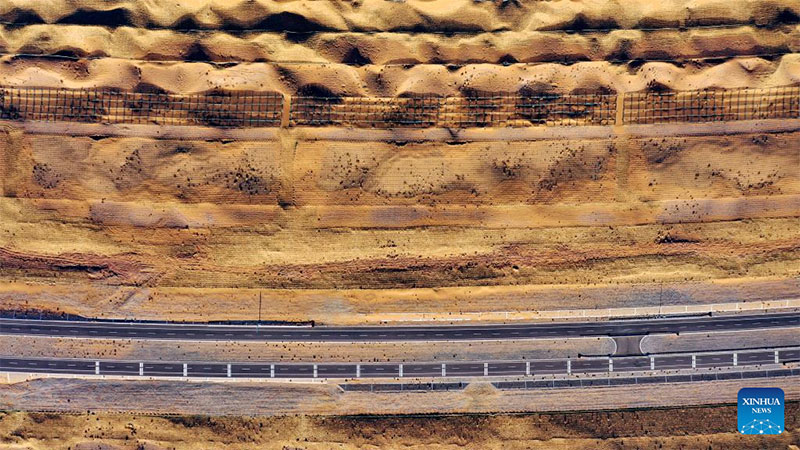 La foto muestra a un trabajador plantando árboles jóvenes en una plataforma estrecha construida a lo largo del acantilado de una monta?a en Liuzhou, en la región autónoma Zhuang de Guangxi, en el sur de China, en marzo de 2021. (Foto / Li Hanchi)