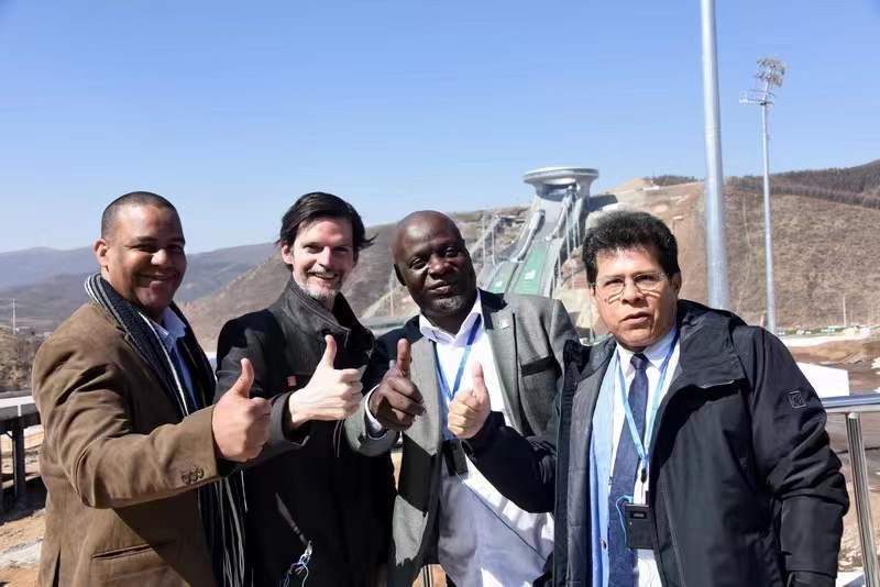 El Sr. Sabino Vaca Narvaja, junto con diplomáticos extranjeros en China, visitó a “Nieve de Ruyi”, el Centro Nacional de Salto de Esquí. (Foto: proporcionada por el entrevistado)