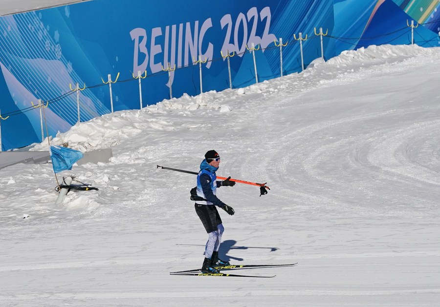 Un participante realiza una prueba en la pista en la zona de competencia de Zhangjiakou de los Juegos Olímpicos y Paralímpicos de Invierno de Beijing 2022, en Zhangjiakou, provincia de Hebei, en el norte de China, el 28 de diciembre de 2021. (Xinhua/Mu Yu)