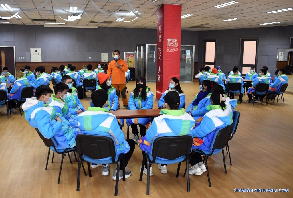 BEIJING, 22 enero, 2022 (Xinhua) -- Voluntarios de la Universidad Jiaotong de Beijing para los Juegos Olímpicos y Paralímpicos de Invierno de Beijing 2022 participan en una sesión de entrenamiento para desarrollar habilidades de voluntariado, en Beijing, capital de China, el 22 de enero de 2022. (Xinhua/Ren Chao)