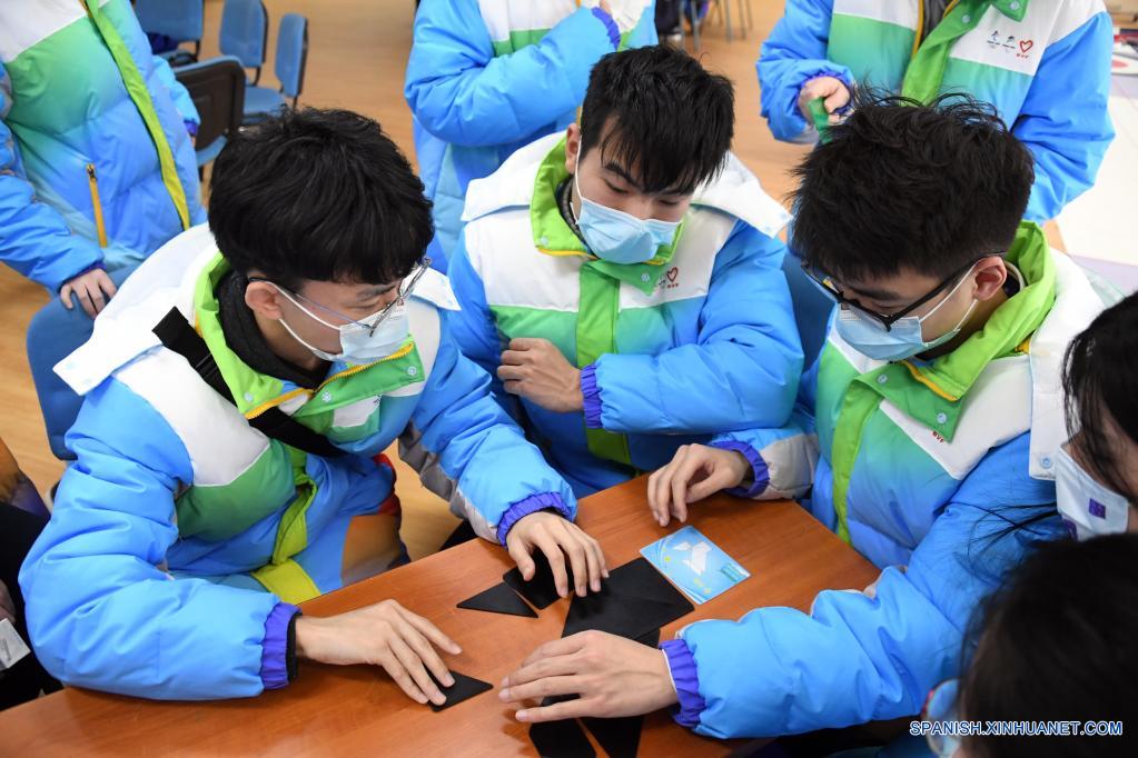 BEIJING, 22 enero, 2022 (Xinhua) -- Voluntarios de la Universidad Jiaotong de Beijing para los Juegos Olímpicos y Paralímpicos de Invierno de Beijing 2022 participan en una sesión de entrenamiento para desarrollar habilidades de voluntariado, en Beijing, capital de China, el 22 de enero de 2022. (Xinhua/Ren Chao)