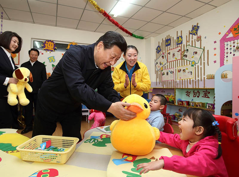 El presidente Xi Jinping entregó regalos a los ni?os con motivo del Festival de la Primavera en la Casa de Bienestar Infantil de Hohhot, Región Autónoma de Mongolia Interior, el 28 de enero del 2014. En esa ocasión, Xi realizó una visita a Mongolia Interior y extendió saludos de a?o nuevo a todos los grupos étnicos. (Foto: Xinhua/Lan Hongguang)