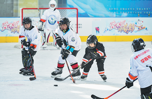 Alumnos de primaria compiten en un concurso de hockey en la provincia de Anhui a finales de enero. YUAN BING/PARA CHINA DAILY