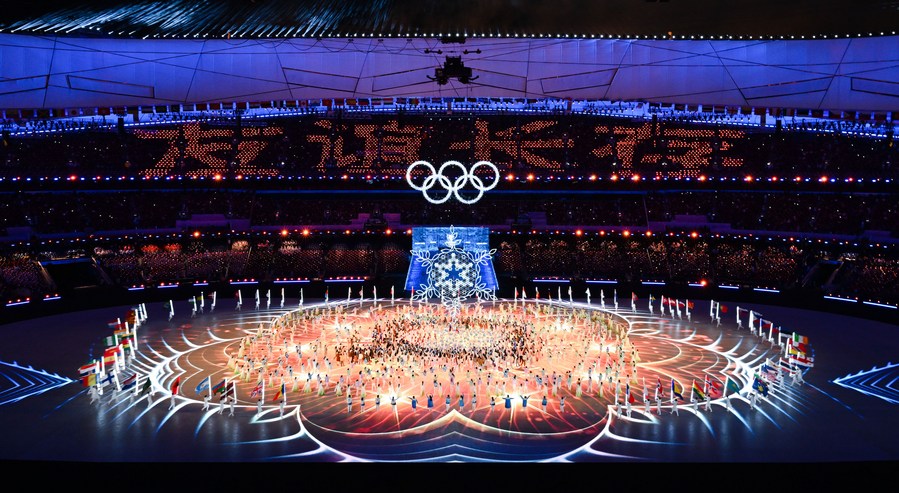 Imagen del 20 de febrero de 2022 de la ceremonia de clausura de los Juegos Olímpicos de Invierno de Beijing 2022 en el Estadio Nacional, en Beijing, capital de China. (Xinhua/Li He)