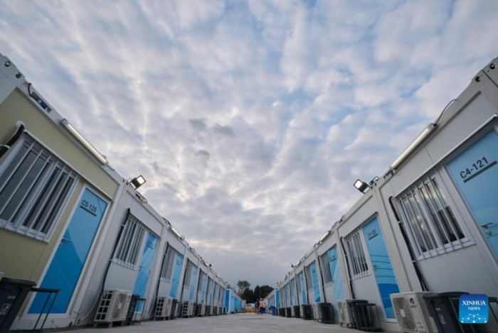 La instalación, que cubre un área de unos 20.000 metros cuadrados, está compuesta por cubículos modulares, con cada habitación equipada con mobiliario básico y ropa de cama, aire acondicionado y sensor de humo, entre otros.