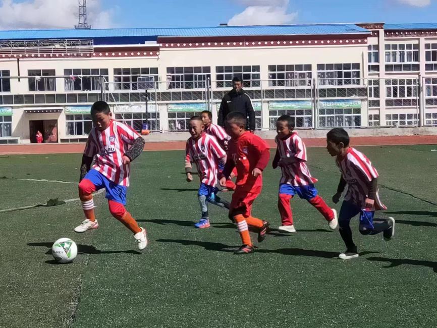 Estudiantes de escuela primaria en el condado Nyanrong, región autónoma del Tíbet, juegan al fútbol. [Foto proporcionada a chinadaily.com.cn]