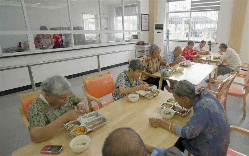 Personas mayores disfrutan de comidas asequibles en la cantina de un centro público para el cuidado de ancianos en Anren, provincia de Zhejiang, septiembre del 2023. (Foto: proporcionada)