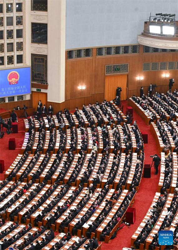 BEIJING, 7 mar (Xinhua) -- La primera sesión de la XIV Asamblea Popular Nacional (APN) celebró hoy martes una reunión plenaria para escuchar los informes de trabajo del Comité Permanente de la XIII APN, el Tribunal Popular Supremo (TPS) y la Fiscalía Popular Suprema (FPS), así como una explicación acerca de un plan sobre la reforma de las instituciones del Consejo de Estado (gabinete).