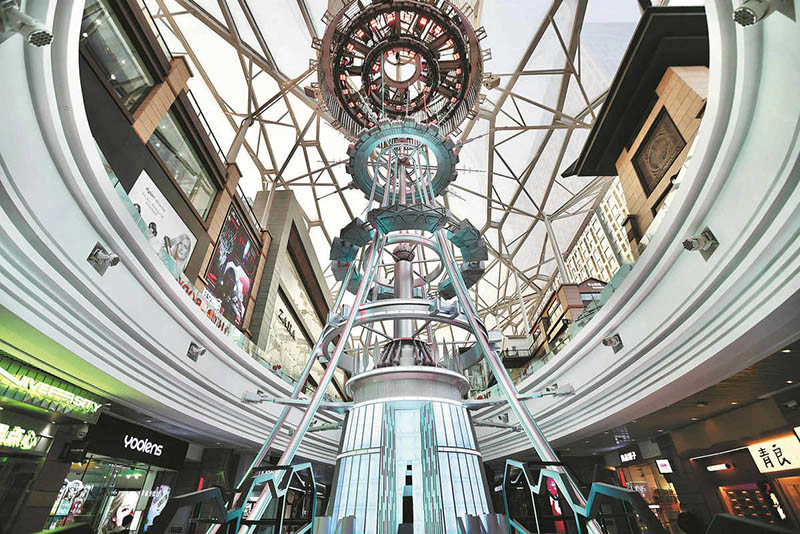 Modelo de ascensor espacial con el tema de un programa chino de televisión de dibujos animados se construye en un centro comercial en Xi'an, provincia de Shaanxi, enero del 2023. (Foto: Yuan Kejia/China Daily)