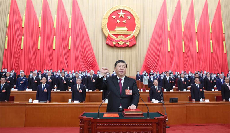 La solemnidad de la reunión de hoy fue subrayada por una ceremonia en la que Xi y otros líderes de Estado recién elegidos prometieron lealtad a la Constitución de China.