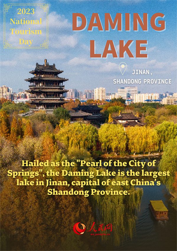 Aclamado como la "Perla de la Ciudad de los Manantiales", el lago Daming es el más grande de Jinan, capital de Shandong. Este lago es uno de los principales monumentos naturales y culturales de la ciudad. Situado al norte del centro histórico, el lago es alimentado por los manantiales kársticos artesianos de la zona y conserva un nivel de agua bastante constante durante todo el a?o. Como centro turístico nacional y una superficie de 57 hectáreas, el Daming acoge una serie de templos antiguos y casas tradicionales.