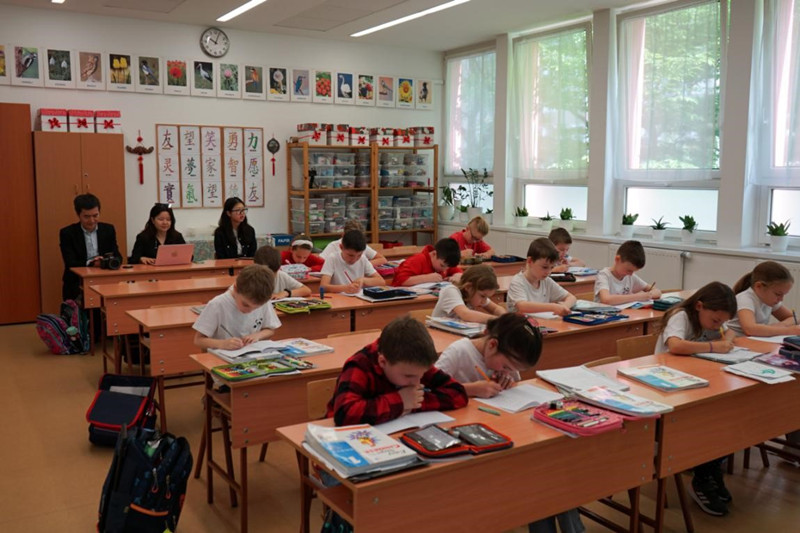 | En abril de 2024, en una clase de chino en una Escuela Bilingüe Sino-Húngara, estudiantes de segundo grado de primaria estudiaban caracteres chinos. Foto de Yi Lin |