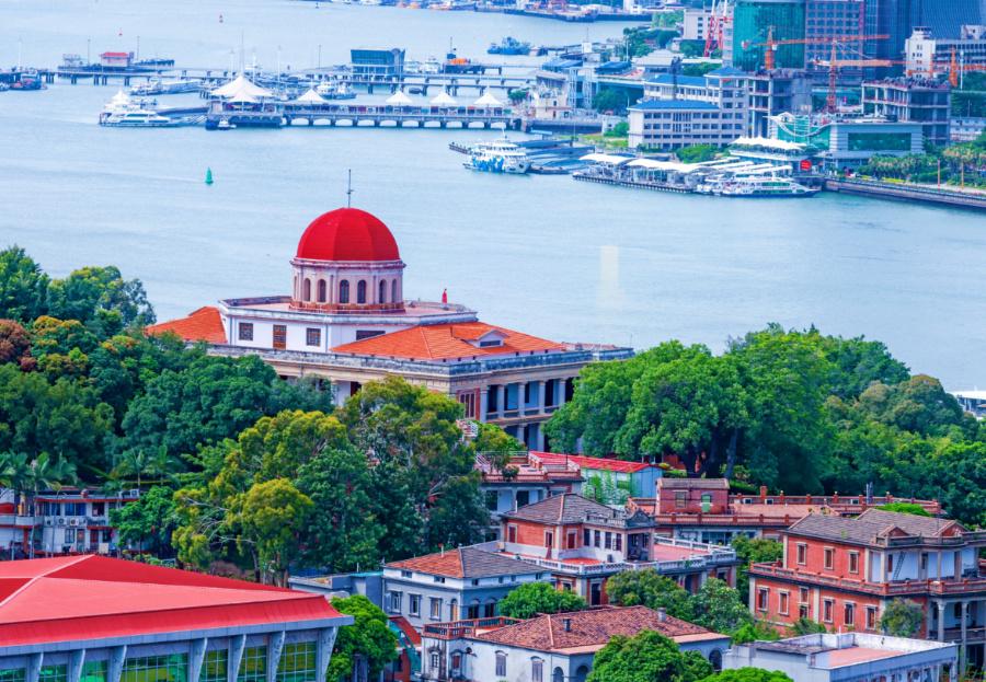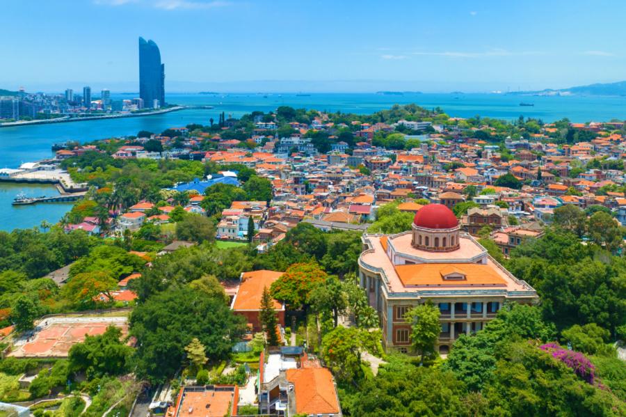 La isla Gulangyu es conocida como el "Museo de Arquitectura de todas las Naciones". Como unidad nacional de protección de reliquias culturales clave, la Torre Bagua es uno de los elementos centrales del Patrimonio Cultural de la Humanidad que confirma la isla Gulangyu. Foto de Yang Jinjian