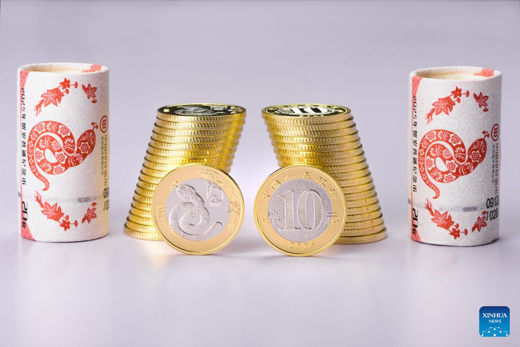 Una empleada muestra monedas y billetes conmemorativos para celebrar el próximo A?o Nuevo chino en una sucursal del Banco de Construcción de China (CCB, por sus siglas en inglés), en Beijing, capital de China, el 3 de enero de 2025. El intercambio de una serie de monedas y billetes conmemorativos emitidos por el banco central de China para celebrar el próximo A?o Nuevo chino comenzó el viernes. (Xinhua/Li Xin)